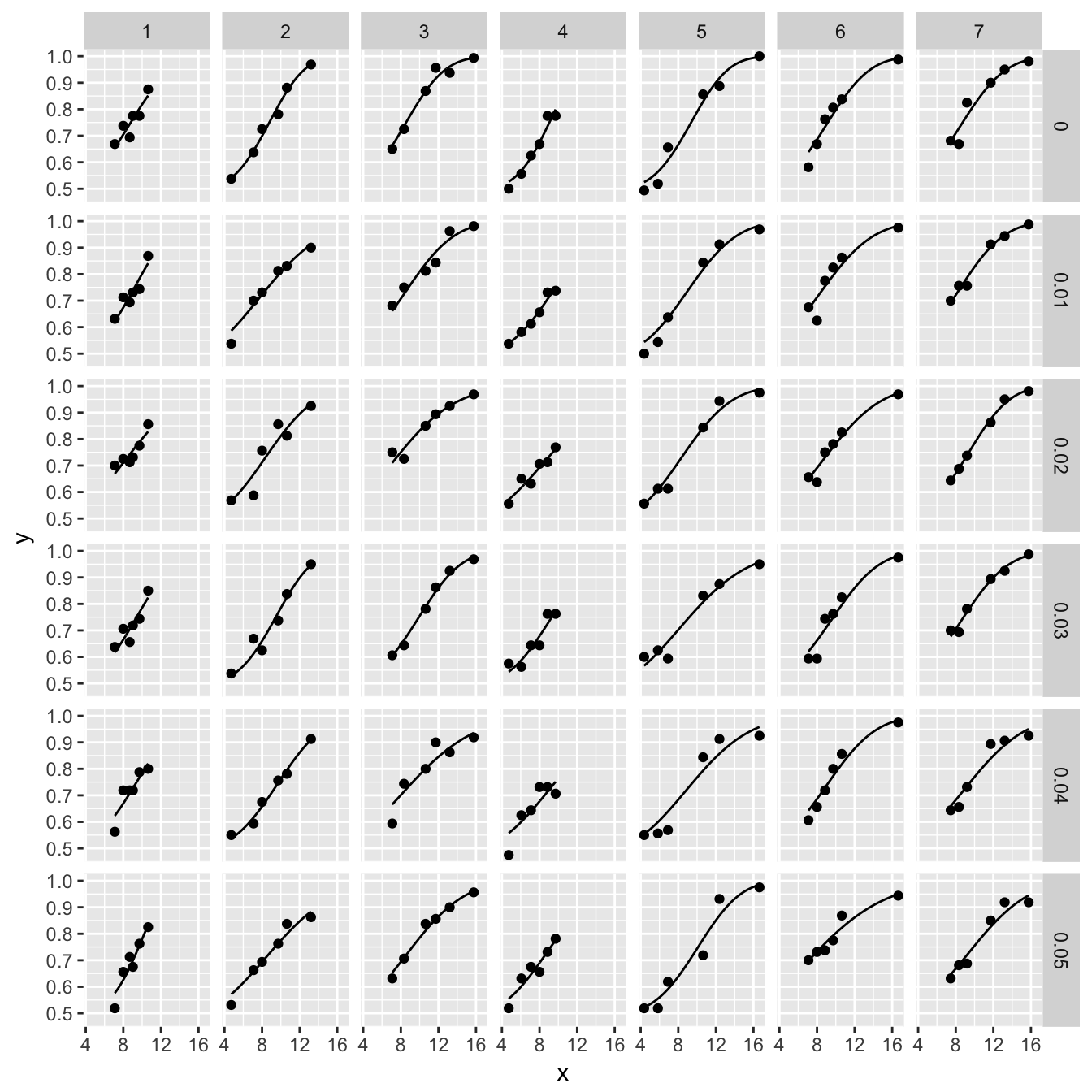 data.frame(x = d$x, k = k, n = d$n , y = k/d$n)
