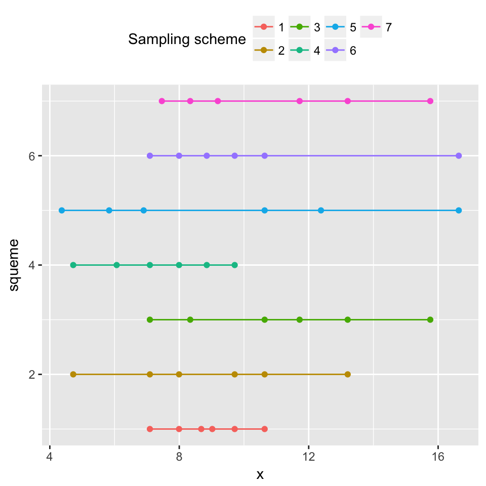 labs(color = 'Sampling scheme') + theme(legend.position = 'top')