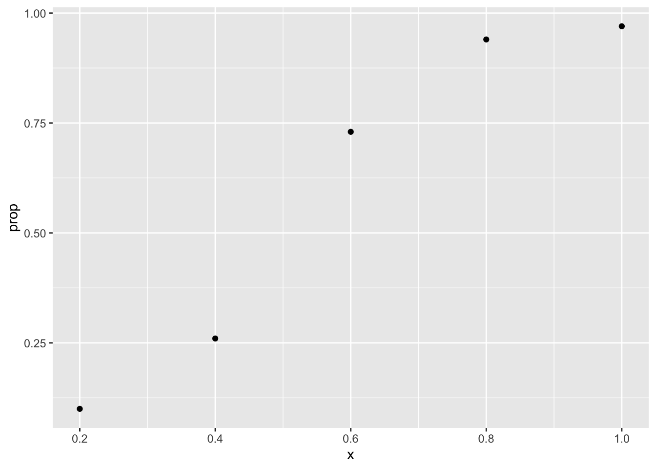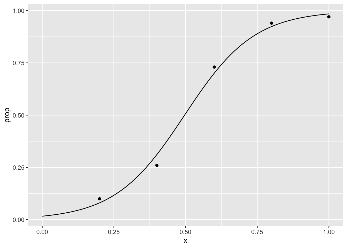 mutate(prop = 1 / (1 + exp(-p_mle[1] - p_mle[2] * x))))