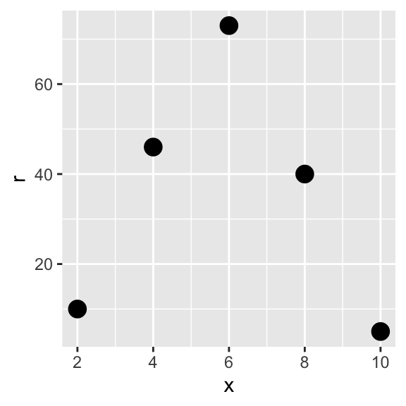 p<-ggplot(data=dat,aes(x=x,y=r))+geom_point(size=4)