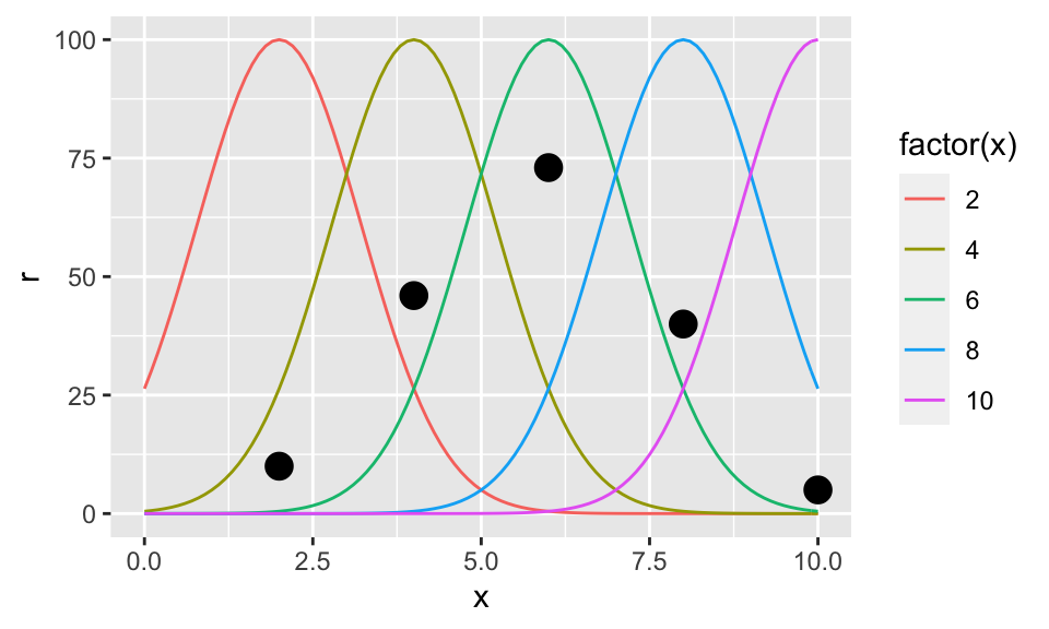 dat<-data.frame(x,r) #we plotted our observations in the x-axis