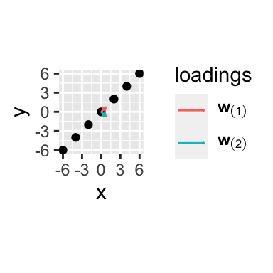 It could be demonstrated that the loadings are the eigenvectors of \(X^T X\) ordered from decreasing value of the eigenvalue.