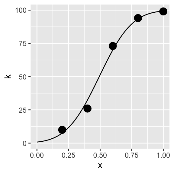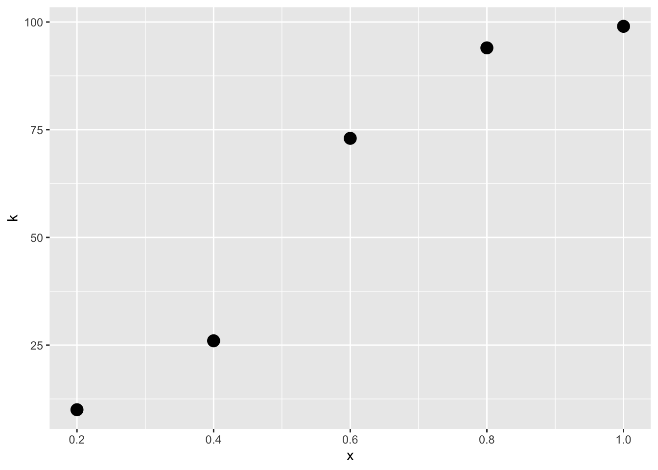p<-ggplot(data=dat,aes(x=x,y=k))+geom_point(size=4)