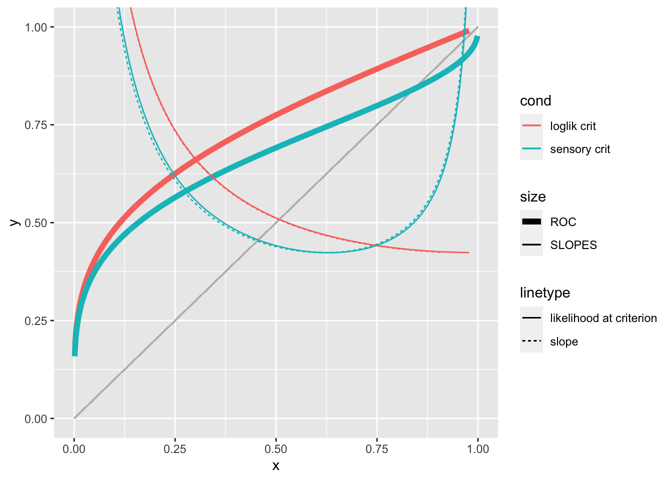geom_line(aes(x = p_fa, y = lik, color = cond, lty = "likelihood at criterion", size = "SLOPES")) +
